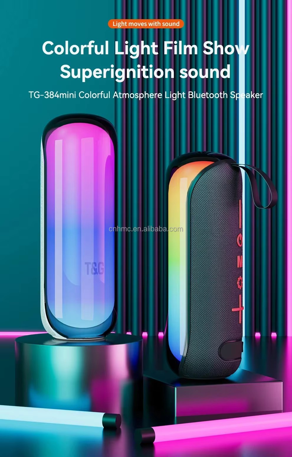 T&G TG-384 Mini Portable Bluetooth-compatible Speaker RGB Light Wireless Music Subwoofer Support TF / U-disk – Green